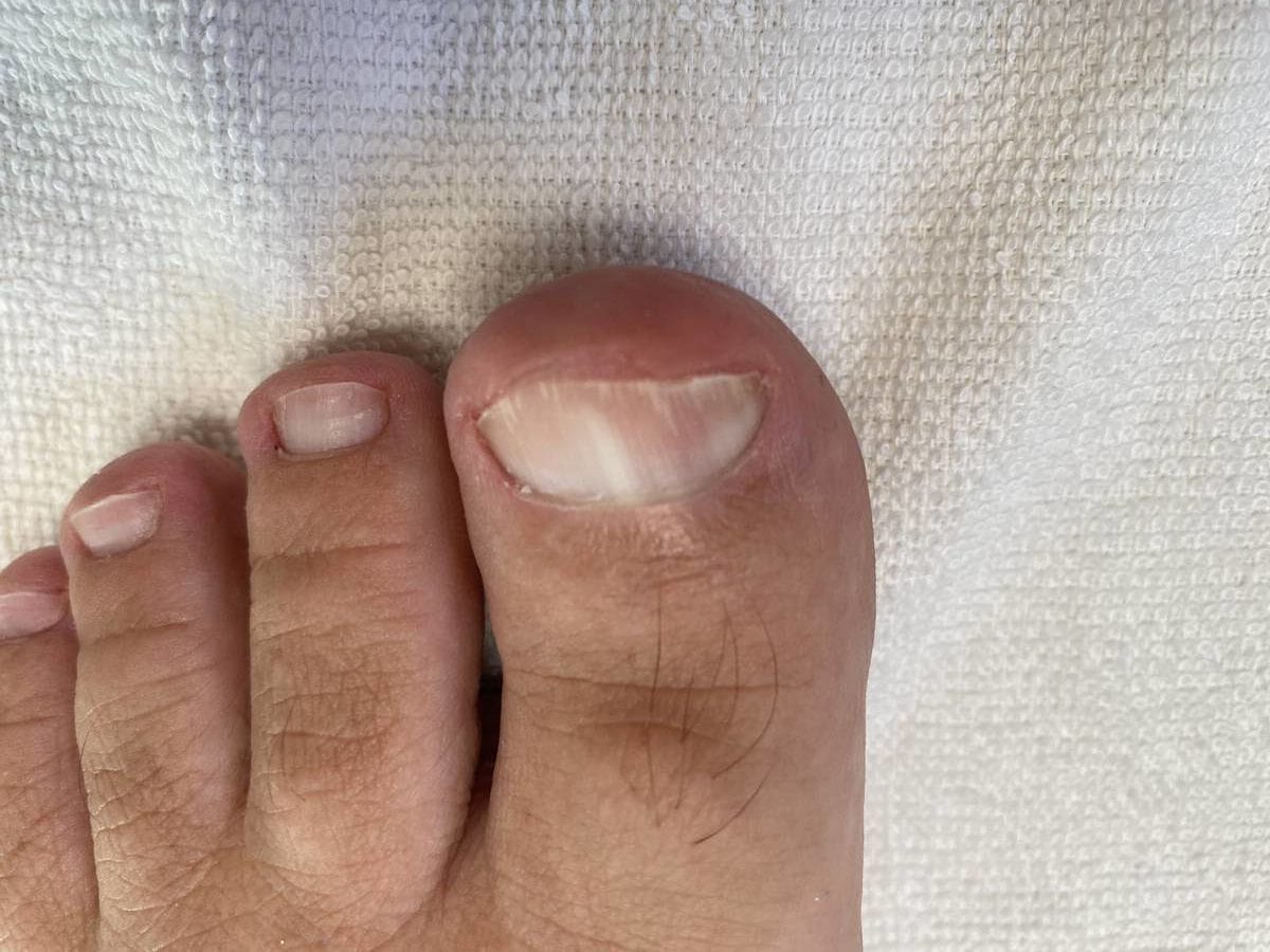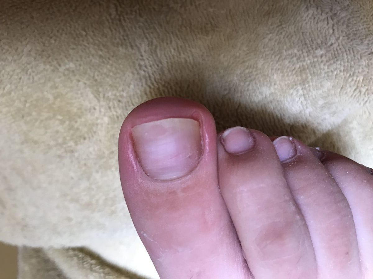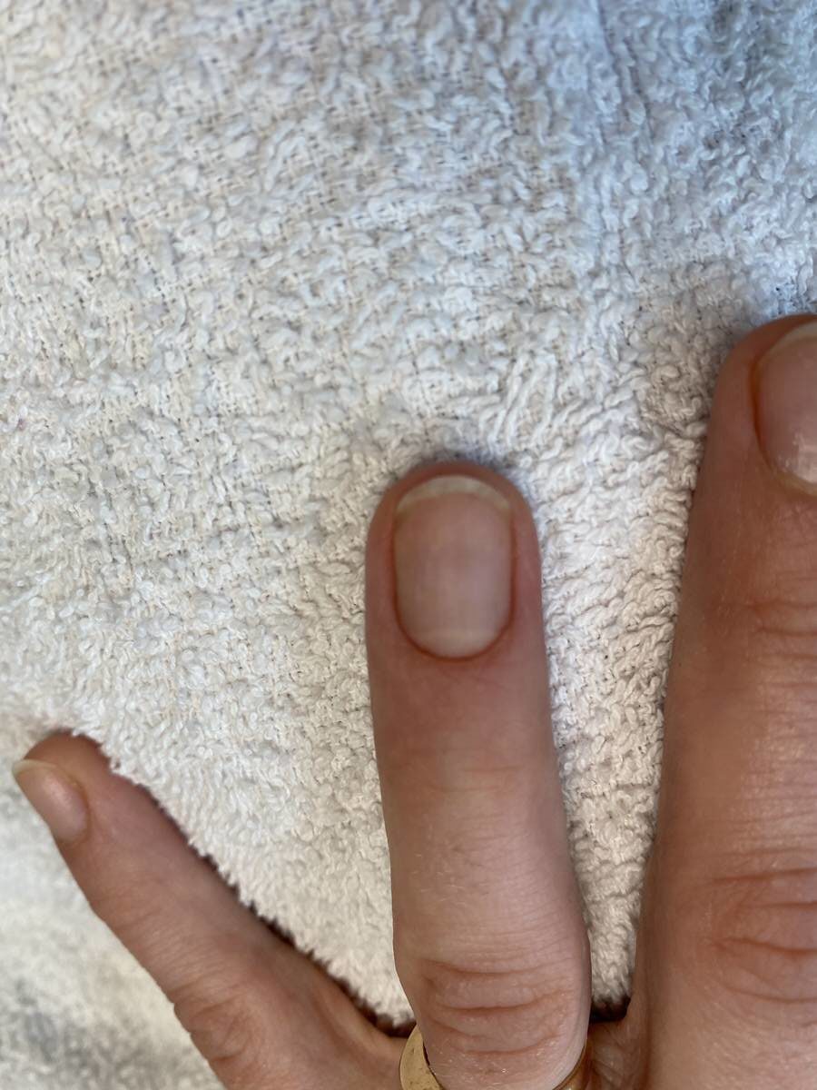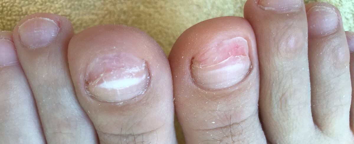 Der Nagel ist im befallenen Bereich weiß verfärbt -