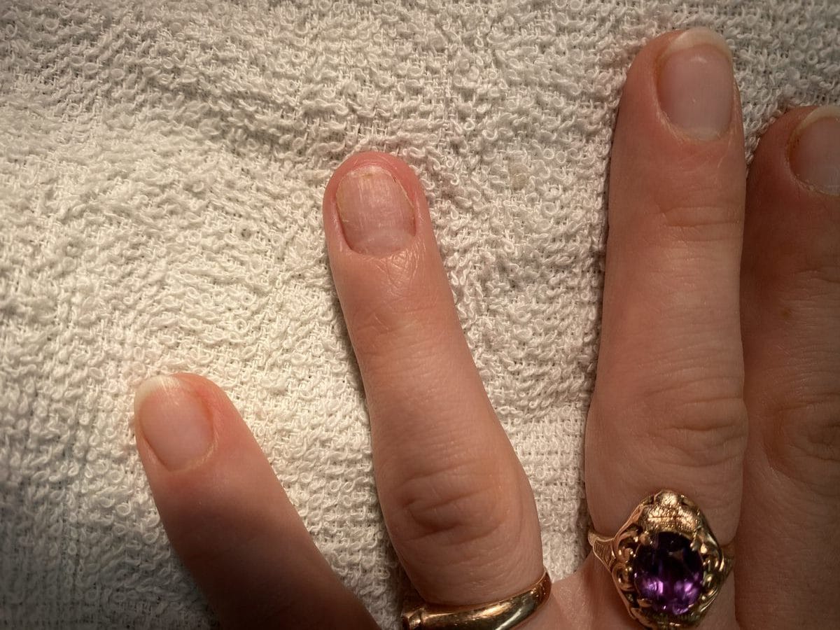 Veränderungen am Nagelrand, wo die Nagelplatte gebildet wird -