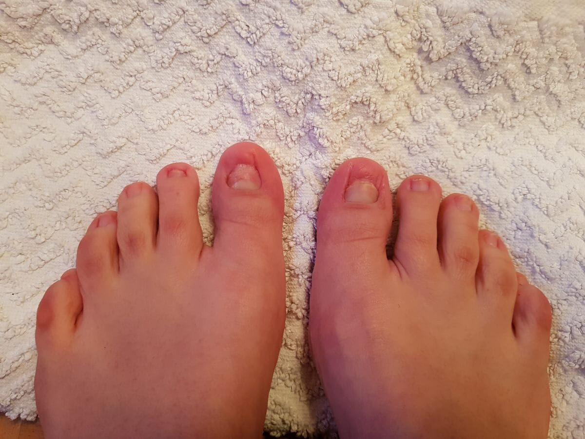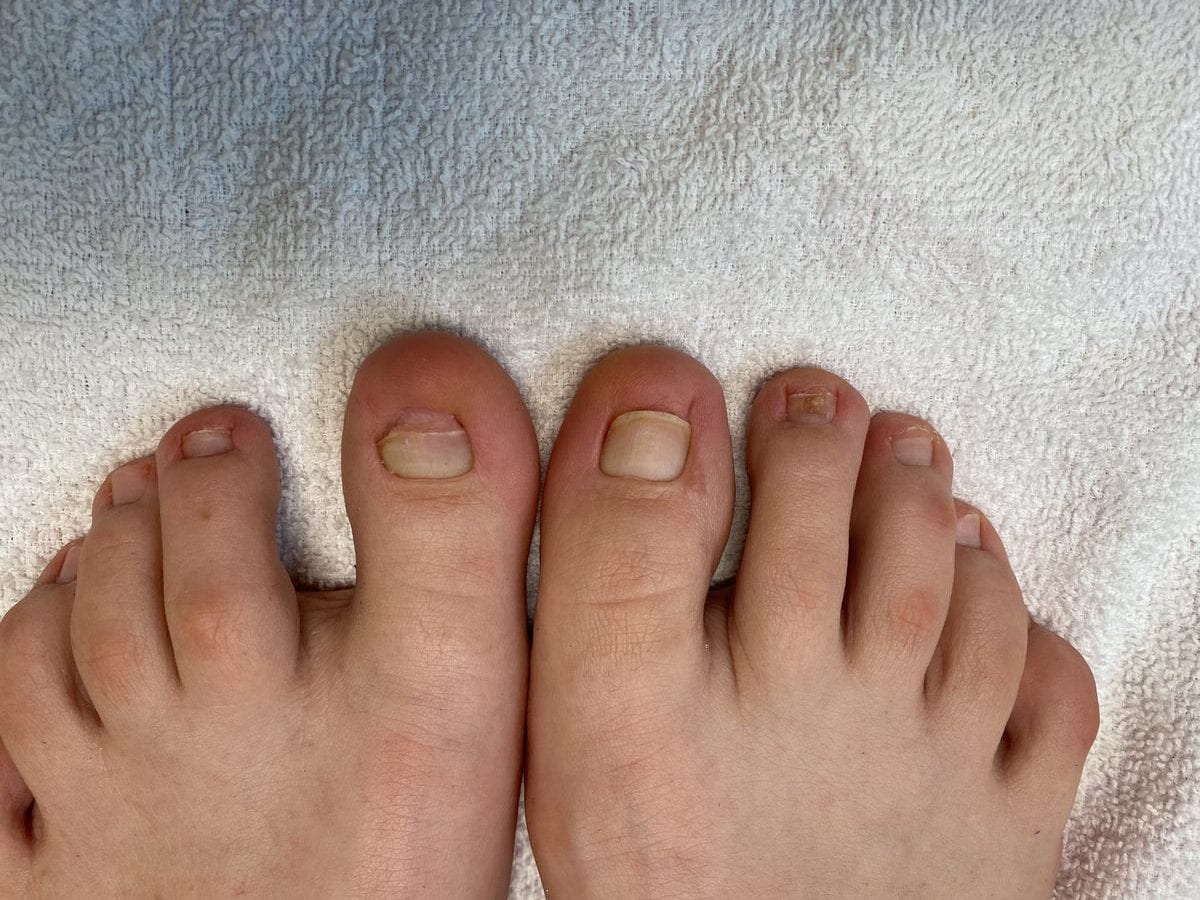 Die Pilzerkrankung beginnt vorwiegend an der Großzehe. Der Nagelpilz macht sich durch gelb-bräunliche Verfärbungen, Verdickungen, Verformungen und einer Anhebung des freien Endes der Nagelplatte der Zehennägel bemerkbar. Typischerweise sind nicht alle Nägel gleichzeitig vom Pilz befallen.